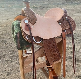 Custom saddles are as individualized as the rider. But we all know that price will play a part in most decisions. There are many variables, but as an example, a custom full rough-out working ranch saddle, built on a Timberline rawhide covered wood tree of your choice and build will start at $3,500. There are plenty of sites out there that sell "custom" saddles built on nothing more than a bunch of dropdown selections, but we don't believe that's what you want. That's not a custom saddle, that's a "cafeteria style" saddle. We will build on any tree you want, build a custom ground seat exactly how you want it, tool it to a pattern you like, put the rigging exactly where you want, and give you the most comfortable, durable saddle you'll own. Literally everything on the saddle will be how you want it to be. As long as there is no customized tooling (names, brands, organizations, etc.), we never charge a deposit, and guarantee you'll love the finished product. Contact us for a free consult.